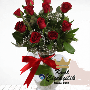 ₺ 129,00 + KDV Sepete EkleVazo İçinde 11 Adet Kırmızı güller ve Lilyum Goncaları