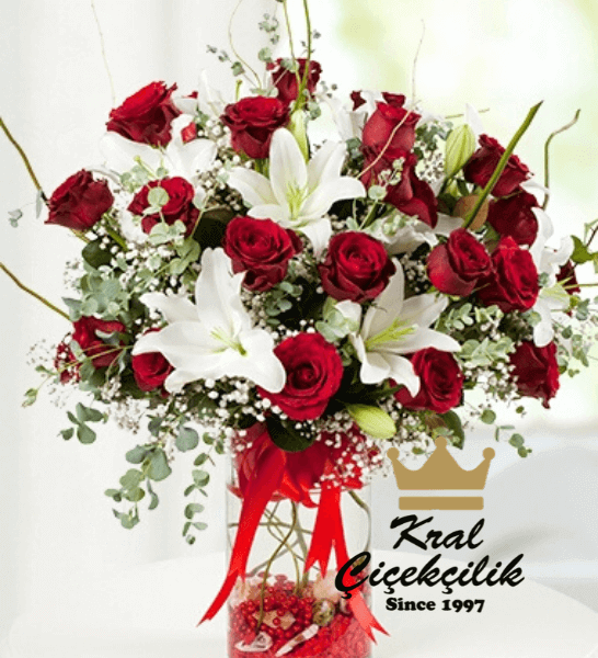 Muhteşem Lilyum ve Gül ile Çiçek Aranjmanı