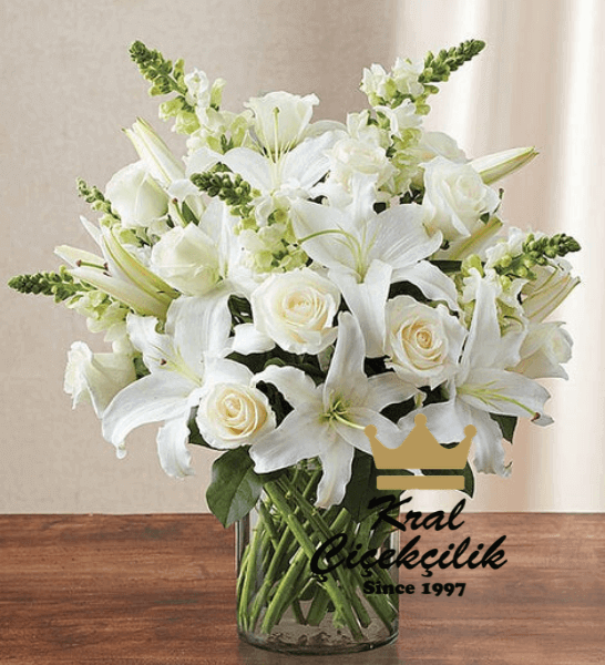 Sevdiğinizi mutlu edecek Muhteşem beyaz lilyum ve beyaz güller