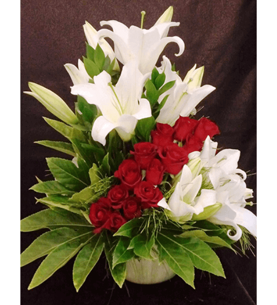 Seramik Vazo İçinde Gül ve Lilyum Aranjmanı