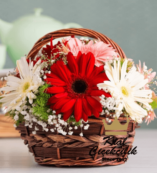 Sepet İçerisinde Renkli Gerbera Çiçekleri