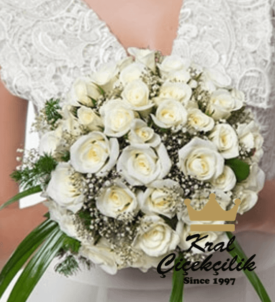 Gelin El Çiçeği Beyaz Güller ve Gelincik Çiçekleri ile hazırlanmıştır
