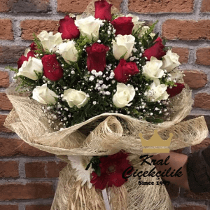 gül buketi modelimiz kırmızı beyaz güllerden oluşmaktadır